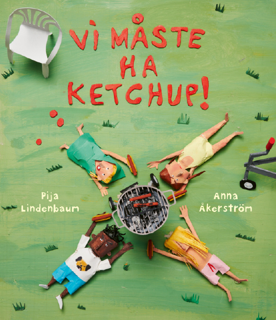 Lindenbaum本月在瑞典出版的新作《我們要番茄醬!》(Vi måste ha ketchup!),故事描述烤肉架的炭火點燃了,孩子們也準備好香腸,但是沒有番茄醬,這根本行不通。孩子們決定去營地「打獵」,或許露營車可以提供我們一些番茄醬?或問問那些在森林裡搭帳篷露營的人?還是那些住在天涯海角、最漂亮的豪華旅行房車裡的人?找到番茄醬並不容易,但孩子們從不放棄,他們就是要吃番茄醬!