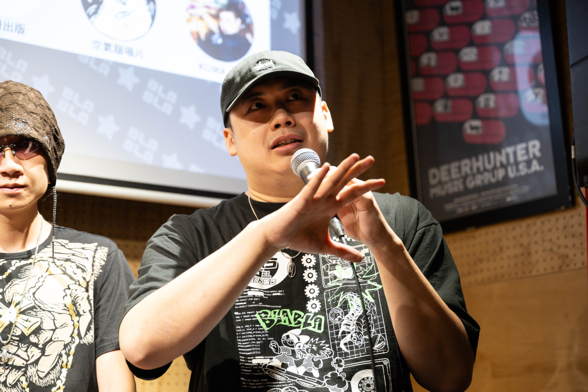 左起:音樂發行人謝閎宥、創作歌手林潔心、臉譜出版副總編輯陳雨柔、漫畫家Peter Mann、饒舌歌手YoungLee、音樂統籌KUMA LIU