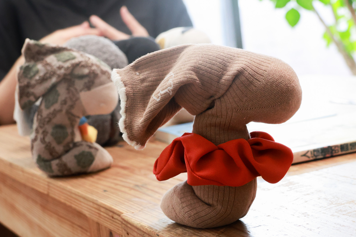 訪問當天,李亞帶來了好幾個自己縫製的襪子鬼娃娃,它們的花色和特徵,各自對應《我的房間有襪子鬼》裡的角色。為了寫這個故事,她「回到10歲的自己」,翻閱那時候的日記,重拾當時的心情和思緒。