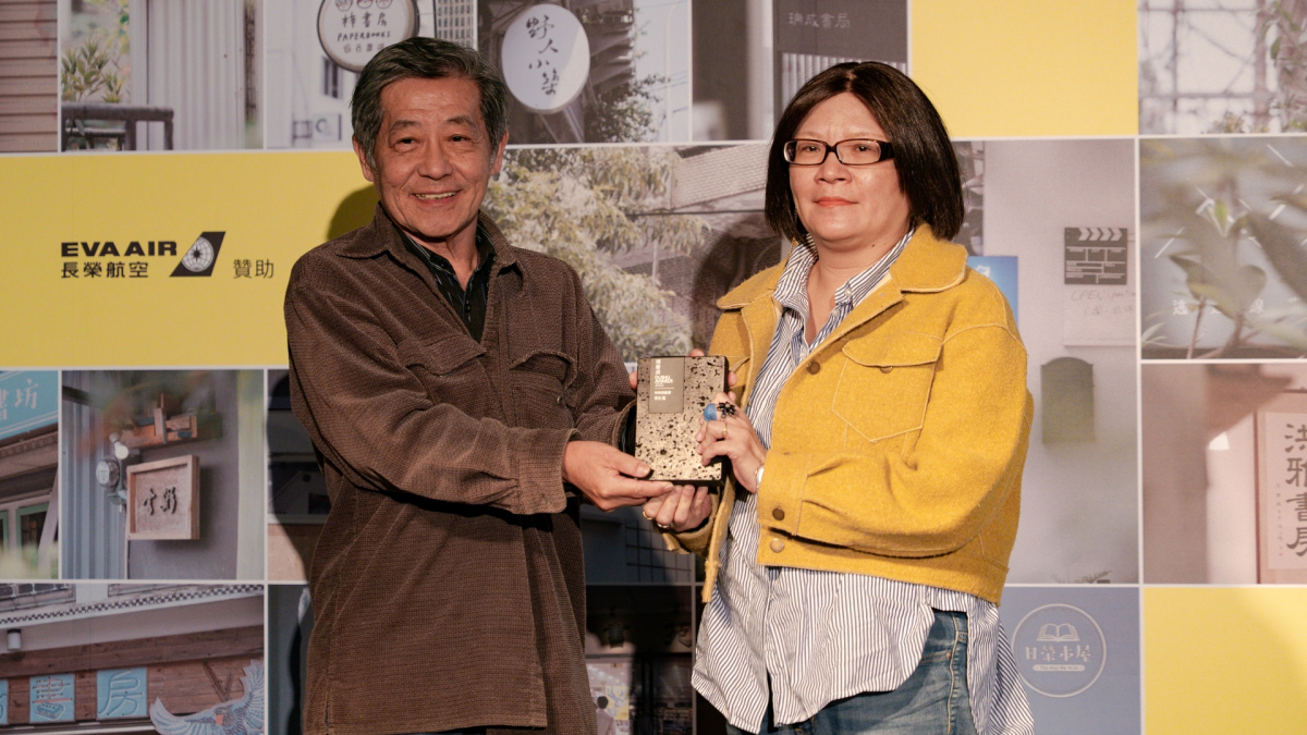 劉虹風從上屆特殊貢獻獎得主陳隆昊手中接過獎座,她表示小小書房不論得到什麼榮耀,第一個都要獻給讀者,「因為讀者存在,小小才存在。」