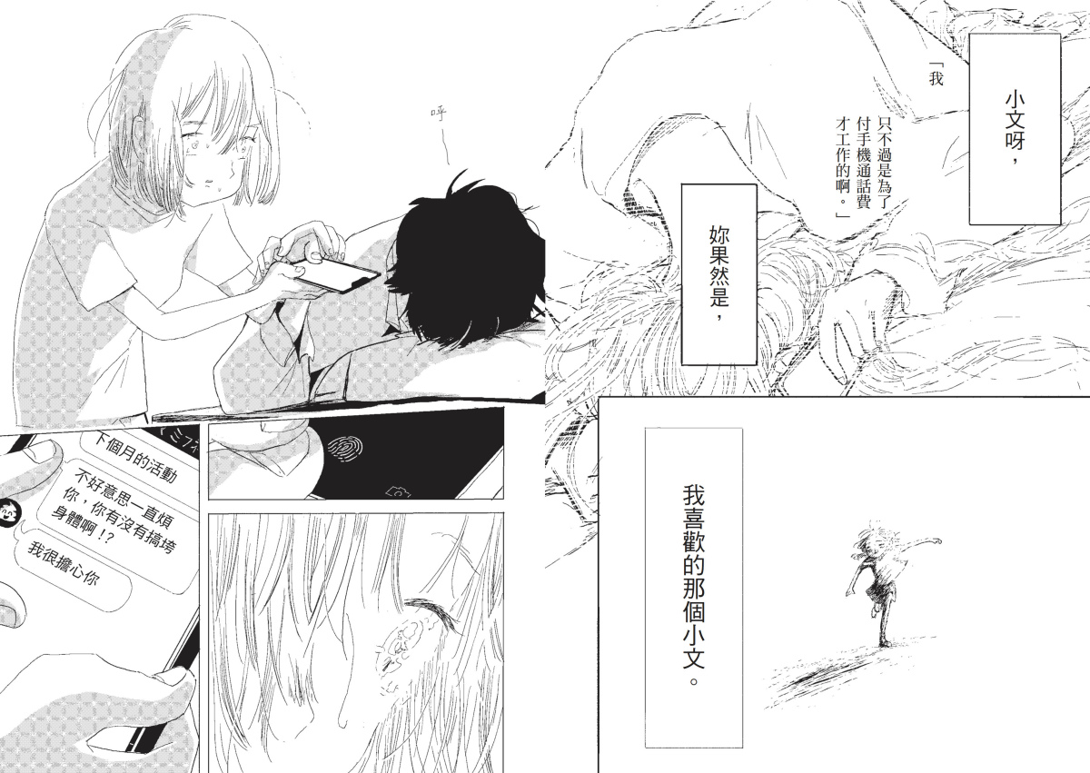 小文經歷的一切,只是為了繳得起手機通話費、傳訊息給她的朋友三舟。小文非常喜歡三舟,她瘋狂暗戀著這個從小認識的女生好朋友。