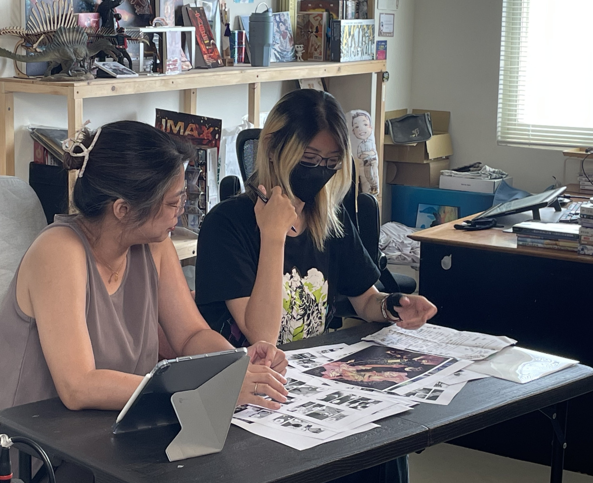 不論是精神上的守護,或是對發展中作品提供的實際協助,身兼製作人與編輯的張曉彤(上圖左),是狼七在《黎明前的回聲》創作過程最信任的戰友。圖片提供/目宿媒體