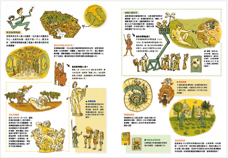 艾娃.班薩(Éva Bensard)著,班傑明.蕭(Benjamin Chaud)繪,徐意筑譯,未來出版,680元 推薦原因: 知 圖 適讀年齡:小學中、高年級(9−12歲) 梵諦岡博物館是這趟紙上旅程的第一站,跟著「資深鑰匙總管」的腳步一起踏上黎明前的長廊,在人聲尚未鼎沸之時,打開古老扇門,和埃及石棺、希臘花瓶以及米開朗基羅名畫一一道早安。這樣不受固定時間路線限制,由第一線建築師、策展人、管理員帶著尋寶的VIP級導覽服務,只屬此書有。太多祕辛與驚奇聽不完,幕前幕後的人情故事與鎮館珍藏一樣精彩,配上超大開本、跨頁插圖的版面安排,保證每一頁每一站都讓人過癮忘返。【內容簡介➤】