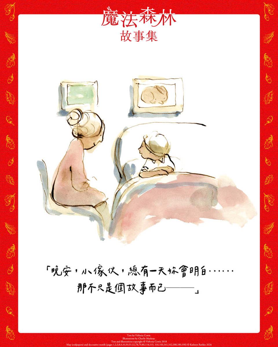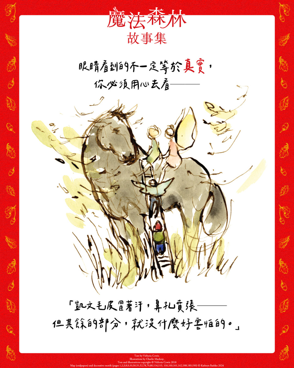 對於這本處女作,卡威伊有兩個心情為之悸動不已的時刻。其一是首次看到麥克斯將她腦海中的世界呈現出來,另外一刻則是收到實體書的當下,她形容自己小心翼翼地拆開包裝,享受拿到實體書的喜悅。但卡威伊說最棒的時刻應該還在未來——那就是有許多孩子在睡前開心地聆聽這些故事,沉浸其中的妙趣。無論是孩子還是仍保有童心的大人,都能在這本書中找到共鳴。所有仍相信森林中有仙子、鼴鼠會說話,以及期待睡前故事以充滿韻味的音調訴說的大小讀者們,快來翻開《魔法森林故事集》吧。●