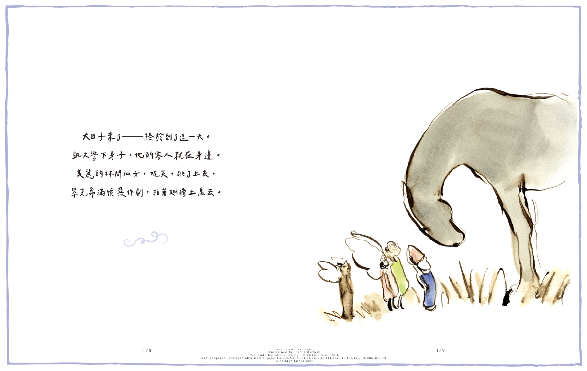 雖然是成名之前的作品,但麥克斯的水彩與墨線風格淡雅溫柔,與卡威伊詩般的語氣相得益彰。不管是森林、精靈、蘑菇或是爐火,總是畫龍點睛地為畫面注入一抹動人的光暈。他的插圖不以誇張為賣點,而是透過留白與寧靜空間,邀請讀者去想像、去感受,使故事裡的魔法與各種超現實的存在變得可信。