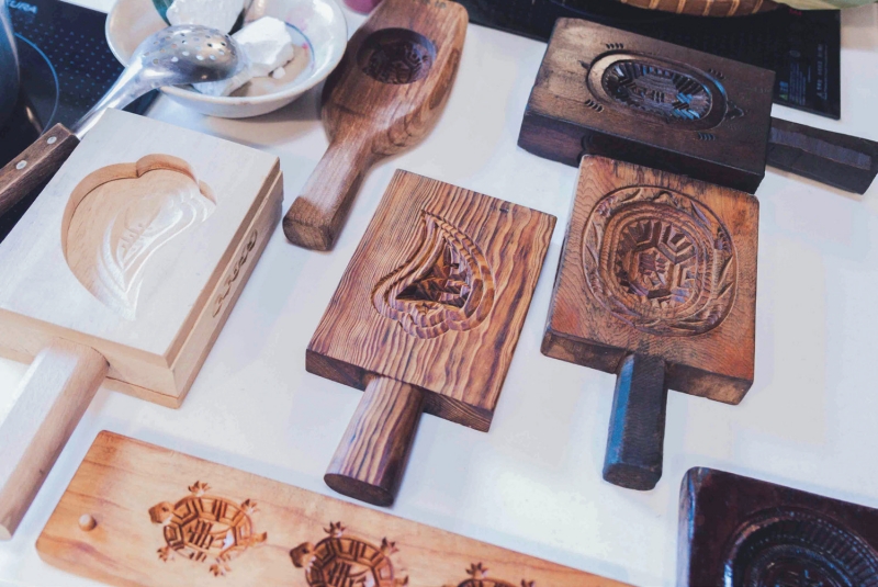 做紅龜粿用的各式粿印。(幸福文化提供)