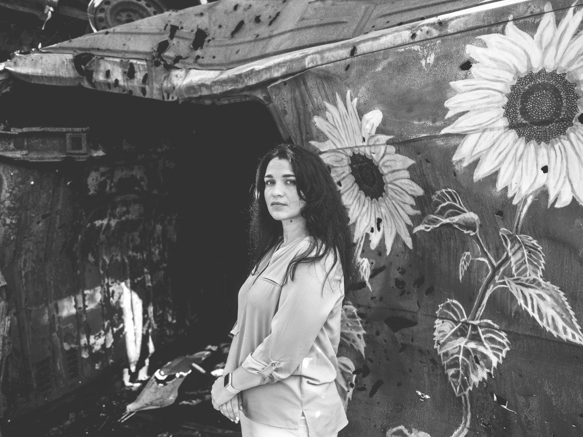 正是在這樣的背景下,眾多烏克蘭藝術家放棄了主業的藝術創作,投身於保衛國家與同胞的志業。維多利亞.阿梅莉納便是其中一人。戰前,阿梅莉納是一位才華洋溢、聲名遠播的作家。她就是我們所說那種屢屢獲獎的類型。她出版小說與童書,足跡遍及世界各地,更創辦文學節。但在烏克蘭遭入侵後,一切驟變。她轉而投入戰地報導,為烏克蘭組織「真相追蹤」調查研究戰爭罪,訪談目擊者與倖存者。