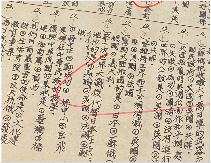 主持人:從你留下的考卷,看到當年的措辭例如反攻大陸等等,現在看來真的匪夷所思。