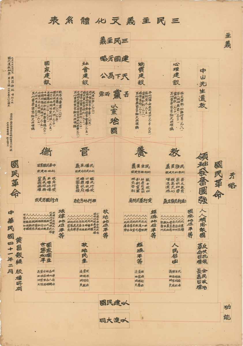 1952年2月由陽明山總管理局發行的「三民主義文化體系表」。 (圖源:國家文化記憶庫)