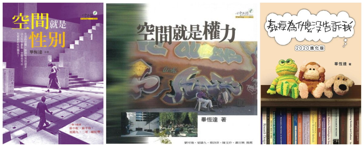 畢恆達:我大學時沒有學過女性主義,當時或許也沒有這樣的課程。出國就讀的紐約市立大學,就是在1960年代人權運動的影響下才成立的學校。而環境心理學這門學科,也是對於傳統心理學的理論與方法有所批判。系上好像沒有一位老師自稱是女性主義者,可是每個人都會有性別角度的批判思考,在課程中也常常會討論到相關議題。我大概是在這樣的環境下潛移默化。