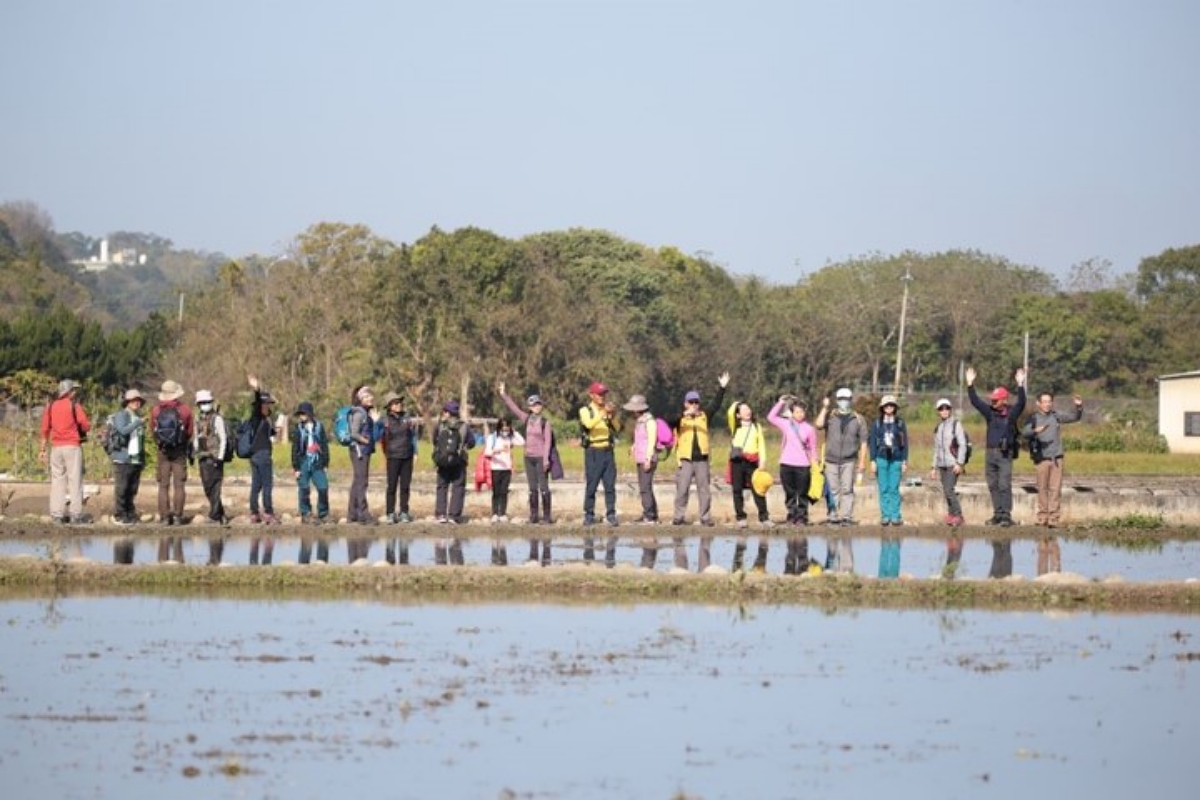 我們30個人站在田埂上代表什麼?我想說的是,我們每次從早上6點出發到下午3、4點回來,一趟約16到20公里的小旅行,那不是走路而已,而是一群人的減碳旅行。大家都在談減碳,我覺得一定要從自己做起,盡量不自駕到遠方。
