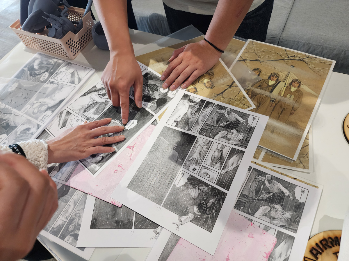 陳弘耀能同時掌握日漫的動態分鏡節奏,與歐漫文學氣質,從漫畫到插畫,他一生留下許多類型的創作。輔具要轉換畫面呈現、讓導覽聽眾直接觸摸體驗,設計從討論選件開始,就讓人難以取捨。
