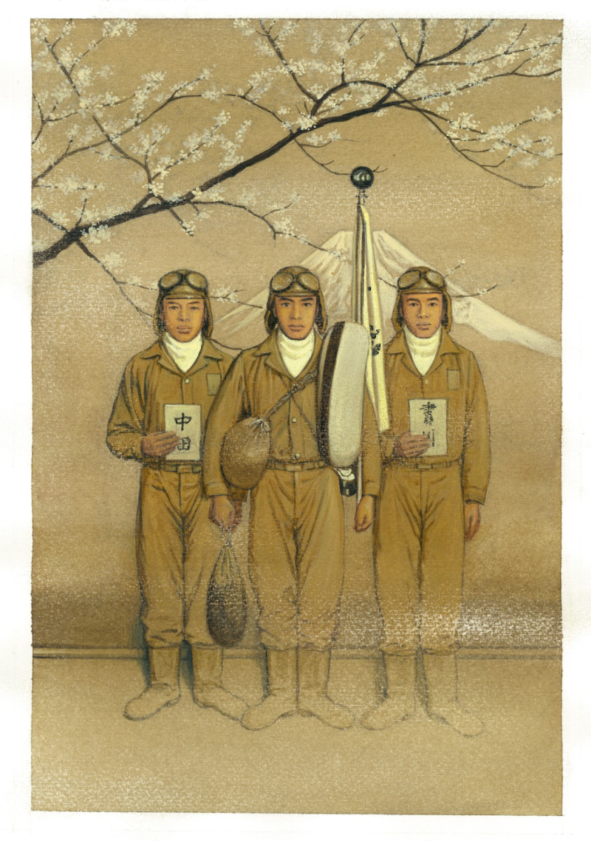 鄭詠中常笑說,「陳弘耀是對自己作品很狠的人」。原來,陳弘耀在《赤狐》呈現暗夜雨水的方式,竟是用刀片割自己的原稿。而另一幅與Discovery頻道《謎樣台灣》合作的插畫,三位出征前的花東神風少年,首次拍照就是遺照,陳弘耀以砂紙磨損畫面,具象化生命隨風砂消逝的痕跡。這樣的過程被黃勇超透過輸出複製稿件,一件一件地親手用刀片與砂紙呈現細節。