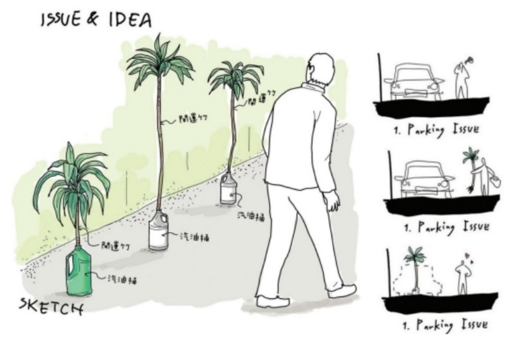 查猜萬經常漫步於曼谷的街頭,他觀察到曼谷人如何利用路邊的空間滿足生活的需要:用拖把柄插入電線桿的孔洞來曬衣服;在倒放的塑膠椅上墊一層平口包裝袋展示商品,下方的空間還可收納庫存與營業用品;既美觀又能防止他人停車擋住家門口的盆栽……
