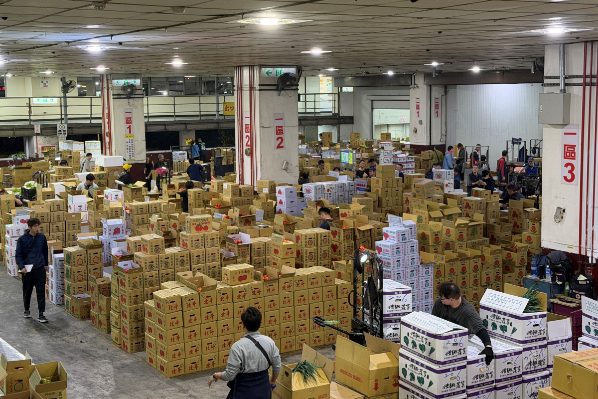 凌晨5點的濱江市場,空氣中瀰漫著濃郁的菜青味與紙箱的乾澀感。
