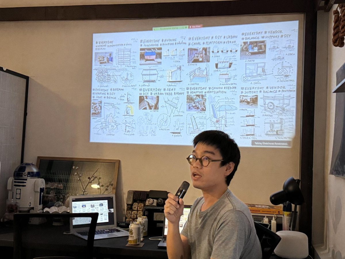 「請問這是你自己設計的嗎?」人聲浩蕩中,一個女聲從攤位前傳來。口譯人員向老闆傳達的,是泰國建築師查猜萬.蘇汪薩瓦(Chatchavan Suwansawat, ชัชวาล สุวรรณสวัสดิ์)的好奇——他是近日出版《泰式街頭雜亂建築》的作者。