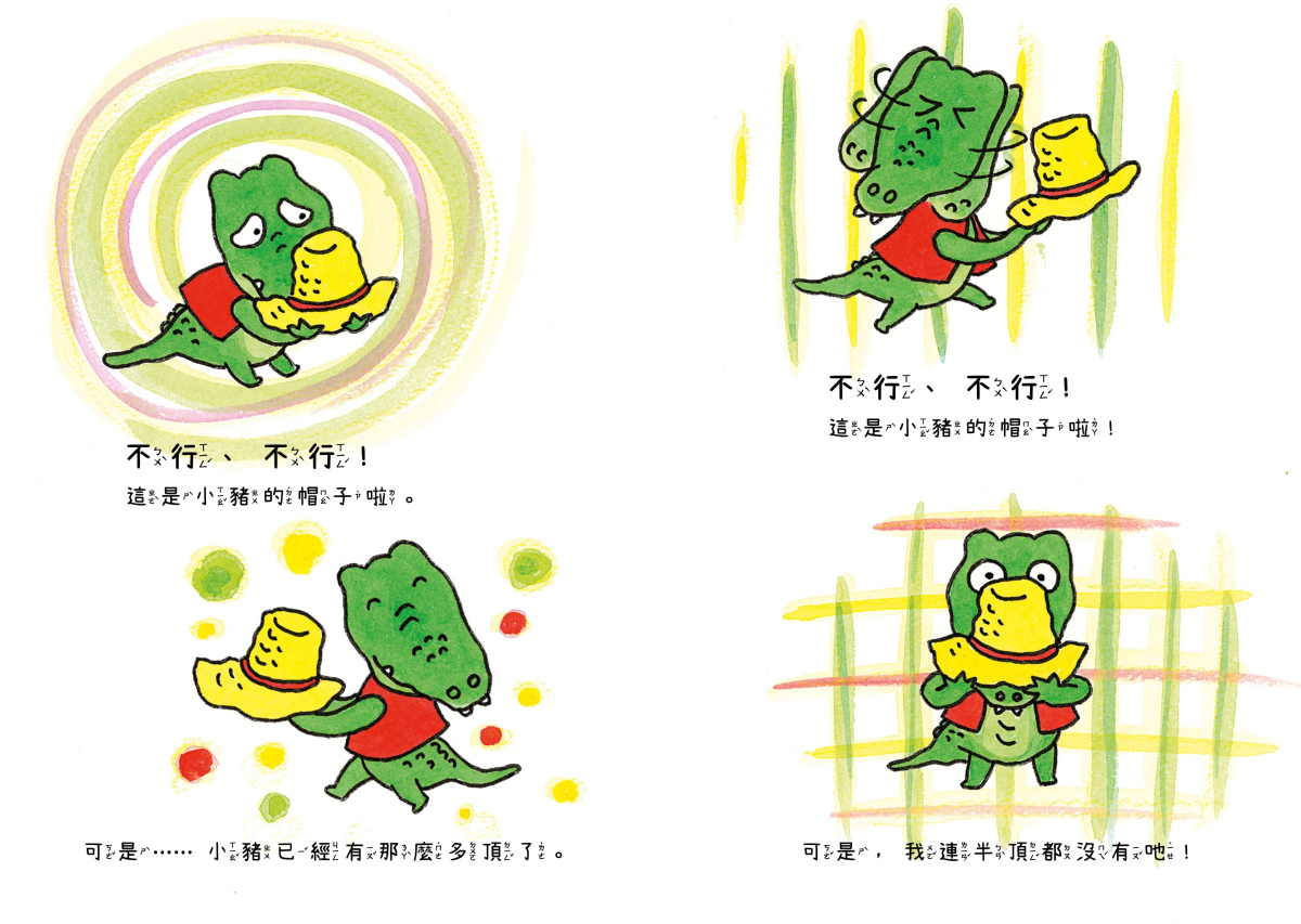 繼不行不行小黃瓜、不行不行冰棒後,鱷魚再度不行不行了——這次讓牠陷入天人交戰的是一頂帽子,當風吹過來,當帽子飄然降落,哎呀呀,一場好戲即將展開,且看人多勢眾的小豬家族如何接招。隅倉智子這系列創作來到第三本,依然把孩子逗得眉開眼笑。除了畫風清新逗趣外,更在鱷魚這個角色裡看見自己內心的羨慕、忌妒、佔有等小小歪念頭,跟著故事一起笑哈哈幽默化解,來一場放輕鬆的思辨練習。【內容簡介➤】