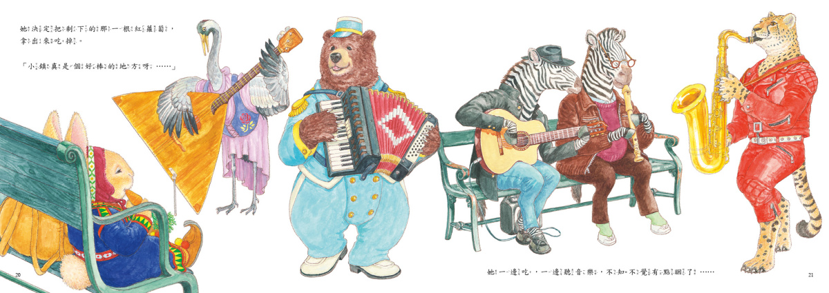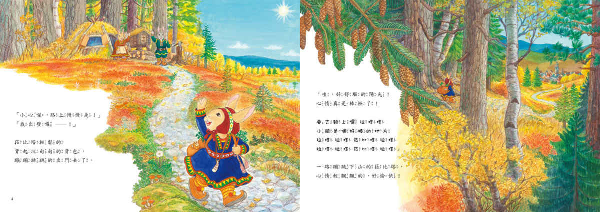 小兔子菈比塔的一身民俗風打扮真是可愛,大紅毛線帽配上藍色鑲邊裙,小小醒目的身影穿梭在市集街道,一下子忙郵寄,一下子忙採買,要趕在天黑前回家團聚。在這本頁頁如歐洲風景畫、充滿童話氣息的故事裡,有白雪有森林,有繽紛有靜謐,更有無所不在的親情。菈比塔對家人的愛與貼心就像一把溫熱的火,點亮了寒冬裡的繽紛,讓每一個讀者心頭都暖暖的。【內容簡介➤】