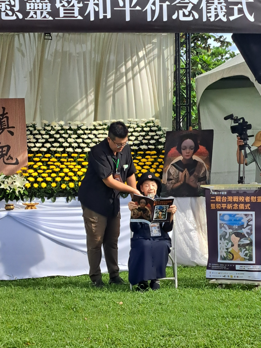 2025年夏秋之交,在高雄旗津戰爭與和平公園舉行的「二戰台灣戰歿者慰靈暨和平紀念儀式」上,98歲高齡的廖淑霞坐著輪椅,由人推著往祭台前進,代表台籍日本兵,以日語向與會眾人致意: