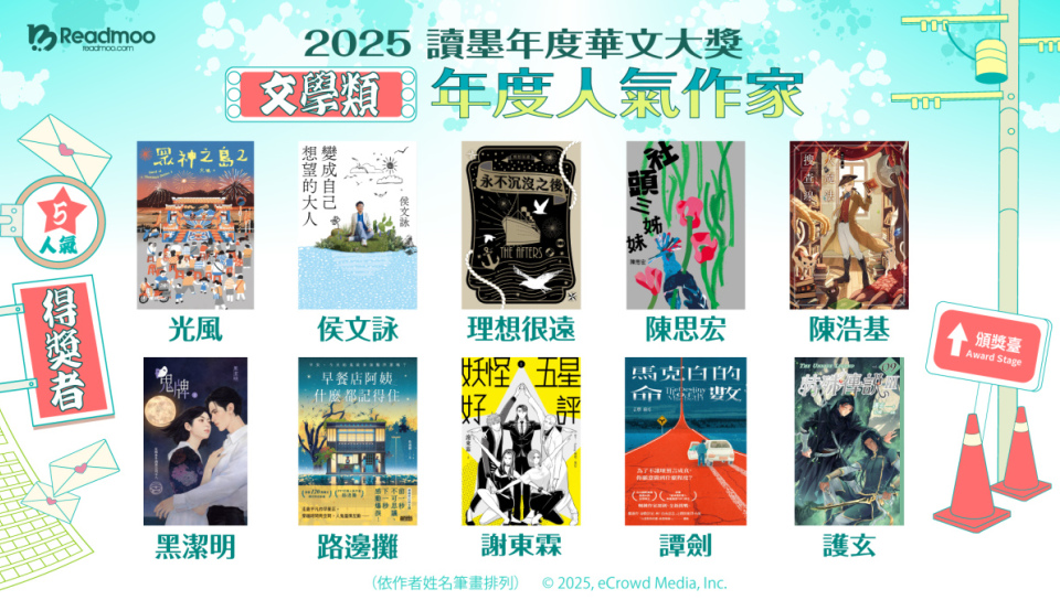 話題》2025 讀墨年度華文大獎十大人氣作家揭曉:陳浩基、蔡康永勇奪讀者最愛作家